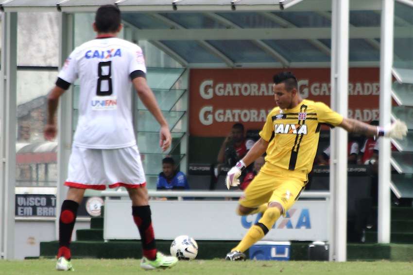 O placar foi elástico, mas o Vasco não teve facilidade no começo da partida em São Januário. Com a estratégia de explorar os contra-ataques, o Atlético Goianiense adotou uma postura defensiva e impediu as investidas cruzmaltinas nos primeiros minutos. A equipe vascaína só assustou pela primeira vez aos 15, com Matheus Peixe. O lateral-direito só não balançou as redes devido a uma grande defesa do goleiro adversário.
