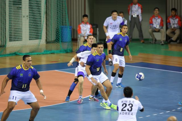 A Seleção Brasileira Militar Masculina de Handebol vai disputar o quinto lugar nos Jogos Mundiais Militares de Mungyeong, na Coreia do Sul. O time formado por Terceiros-Sargentos da Força Aérea Brasileira (FAB) caiu em grupo difícil e foi superado pelos anfitriões da Coreia do Sul (30 a 28) e pelo tradicional Egito (30 a 18), mas venceu Omã por 39 a 24. A equipe é formada por 14 atletas que atuam no Vasco/FAB (RJ) e pelo pivô Rogério Moraes, do THW Kiel, da Alemanha.