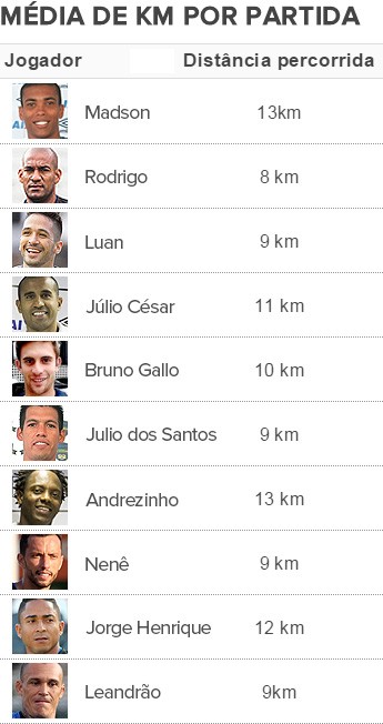 Fôlego de garo... quer dizer, de veterano mesmo. Com média de 30,4 anos, o Vasco tem o time mais velho do Campeonato Brasileiro, em comparação envolvendo os titulares dos demais 19 clubes participantes. E mesmo assim vem se destacando fisicamente nesta reta final de temporada, provando que idade não é documento. Considerando apenas jogadores de linha, a atual equipe titular de Jorginho percorre aproximadamente 103 km por partida. Madson e Andrezinho são os que mais correm, com média de 13 km cada um, seguidos por Jorge Henrique e seu reserva imediato Rafael Silva, ambos com 12 km.