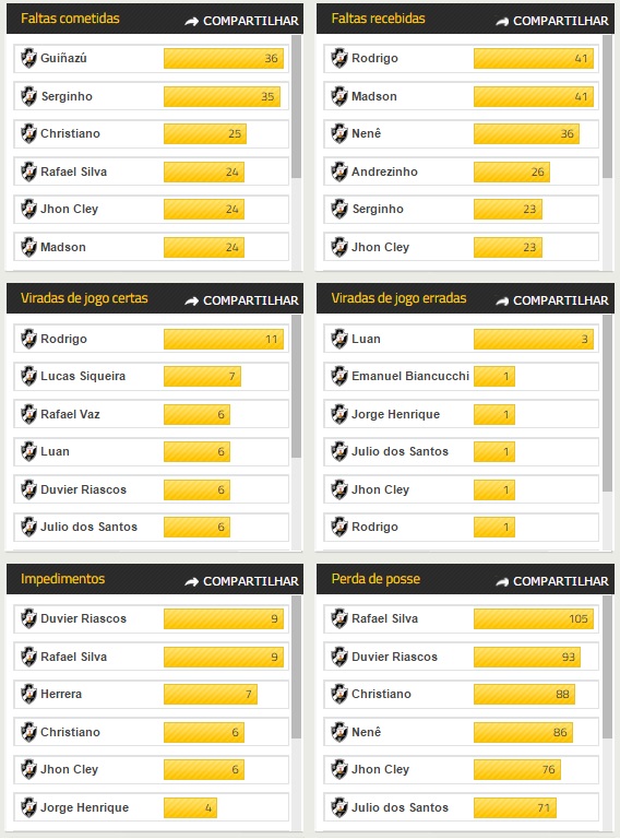 Confira estatísticas das primeiras 28 rodadas do Campeonato Brasileiro