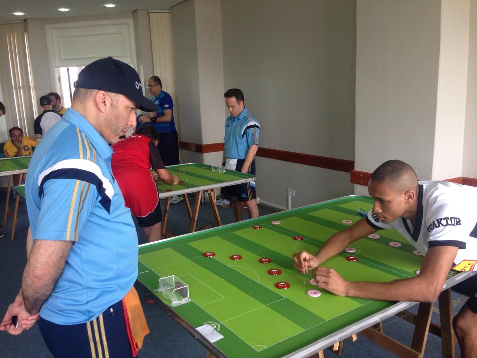 Neste momento Palmeiras e Rosário se enfrentam pelo Sulamericano de Futebol de Mesa - Subbuteo