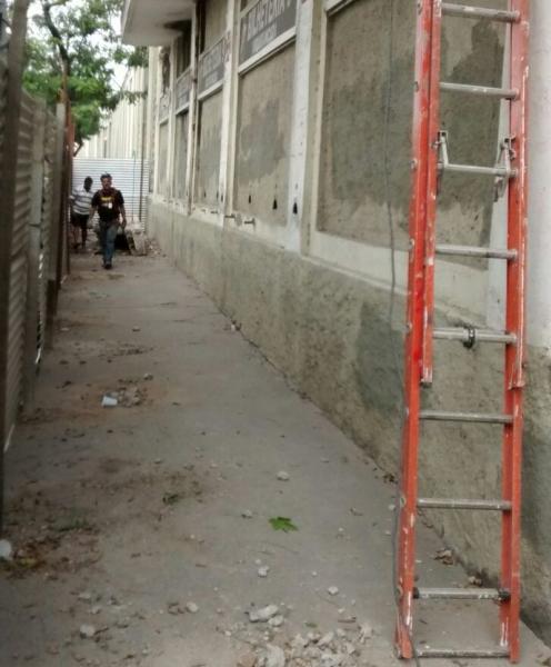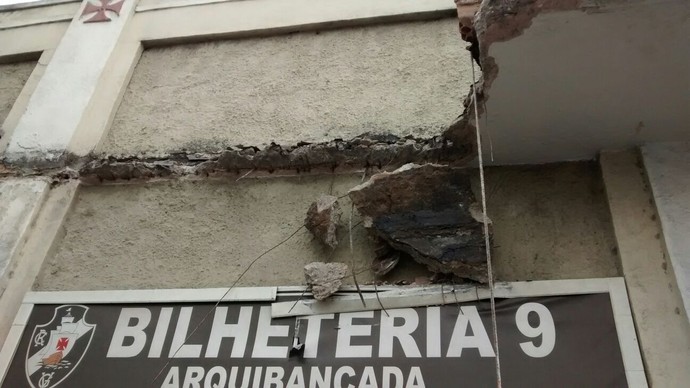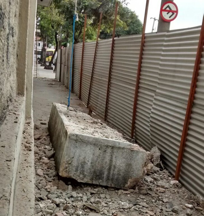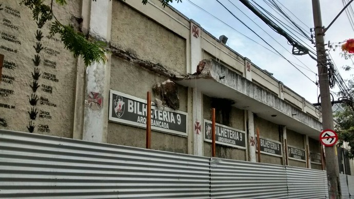 Um acidente assustou operários nas obras de São Januário nesta manhã. Dois funcionários retiravam bloco de concreto acima da bilheteria 9, na rua Francisco Palheta, quando um pedaço da marquise despencou junto com um dos operários, que sofreu escoriações e logo foi retirado do local. A obra fica bem próxima ao estacionamento dos jogadores de futebol profissional, onde será erguido o Caprres, centro de saúde para prevenção e recuperação de atletas. Veja abaixo as fotos que o GloboEsporte.comrecebeu do pequeno acidente em São Januário.