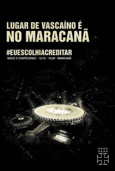 CR Vasco da Gama @vascodagama O seu lugar hoje é no Maracanã! #EuEscolhiAcreditar
