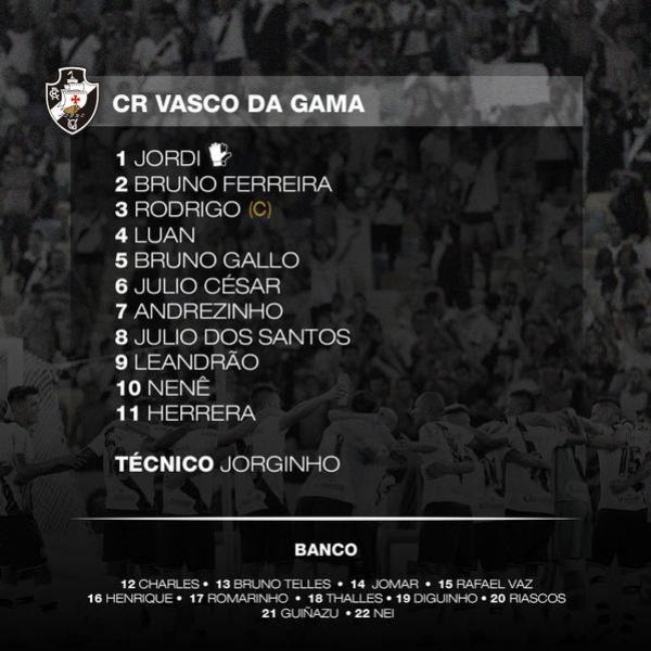 CR Vasco da Gama @vascodagama Escalação oficial do Vascão para o jogo contra a Chapecoense. #VASxCHA