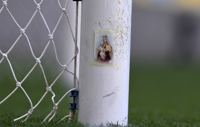 Antes do início das partidas, lá está uma pequena e simples imagem de papel de Nossa Senhora do Carmo. Sempre a mesma, colada com Durex horas antes das partidas no pé da trave. Ela guarda a meta ao lado direito das antigas cabines de rádio - onde fica a torcida vascaína. À direita do goleiro ali postado, na parte de fora. E é retirada logo depois do juízo final.