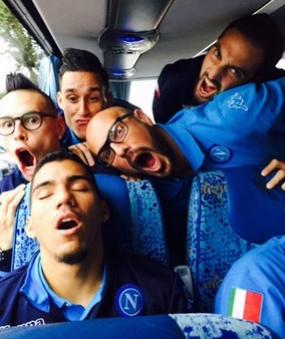 Pepe Reina, Marek Hamsik, José Callejon e Gonzalo Higuaín rodearam o brasileiro, que estava até de boca aberta, e tiraram uma selfie.