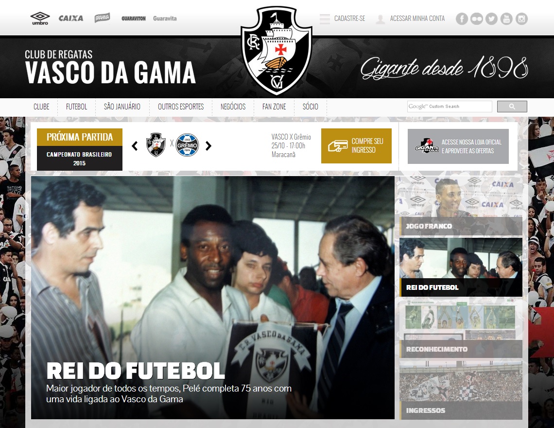O Rei do futebol completa, nesta sexta-feira (23/10), mais um ano de vida. Aos 75 anos, Pelé é o maior jogador do esporte de todos os tempos e reconhecido por abrigar em sua trajetória grandes honrarias, como o prêmio de "Atleta do Século", concedido em 1999, e o título de Sir - Cavaleiro Honorário do Império Britânico, condecorado pela Rainha Elizabeth em 1997. Vencedor de três Copas do Mundo com a Seleção Brasileira e autor de 1284 gols, Edson Arantes do Nascimento tem o Vasco entrelaçado em sua história.