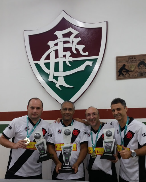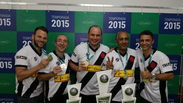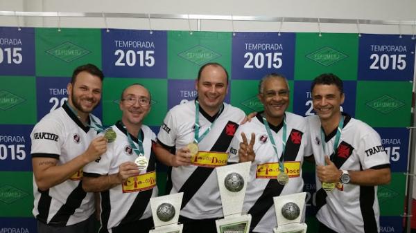 A equipe de futebol de mesa vascaína conquistou ontem, dia 25/10, o bicampeonato estadual interclubes na categoria master da modalidade 12 toques, jogando nas Laranjeiras, na sede do Fluminense, ao vencer o segundo turno da competição – Taça Rio. Como já havia vencido também o primeiro turno no mês de maio, o Vasco ficou com o título de forma direta.