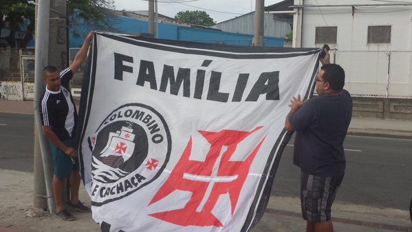 Thiago Lima @tdellima Torcedores levam bandeirão para porta do Engenhão. Dupla está otimista: "Reação começa domingo" #gevas