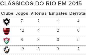 No que depender do retrospecto diante dos rivais em 2015, o Vasco tem tudo para vencer o Fluminense neste domingo, às 18h (de Brasília), no estádio Nilton Santos, o Engenhão, e seguir vivo na luta para escapar do rebaixamento no Campeonato Brasileiro. O Cruz-Maltino, que por sinal foi o campeão carioca este ano, chega para o último clássico da temporada com ampla superioridade sobre os maiores adversários do Rio de Janeiro. Foram oito vitórias, três empates e só duas derrotas em 13 confrontos com Flamengo, Fluminense e Botafogo - aproveitamento de 69,2% contra 38,8% do Rubro-Negro, 37,5% do Tricolor e 33,3% do Alvinegro.