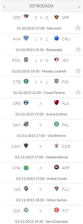 Coritiba e Figueirense empataram entre si; o Avaí também ficou no empate, com o Cruzeiro; e o Joinville perdeu para a Ponte Preta. Desta forma, se o Vasco derrotar o Fluminense neste domingo (01/11), ficará apenas 2 pontos atrás do 16º colocado Avaí, podendo deixar o Z4 na rodada seguinte, a 34ª, quando enfrenta o Palmeiras fora de casa.