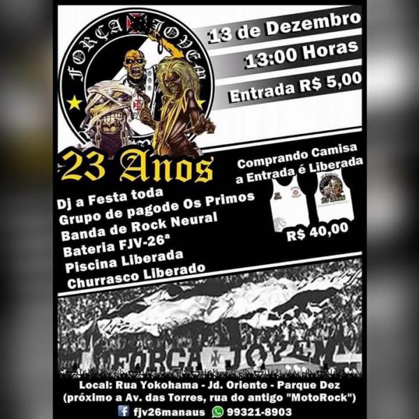 Convidamos todos os membros, aliados e simpatizantes da torcida para comemorar os 23 anos da FORÇA JOVEM DO VASCO Reinando em Manaus.