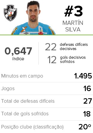 Com 16 jogos na competição nacional, o goleiro argentino ficou a apenas quatro defesas difíceis decisivas da ponta do índice. Com ele em campo, o Vasco venceu três, empatou sete e perdeu seis. Por ser o que tem menos jogos entre os líderes, cada defesa difícil decisiva que faz altera mais seu índice. Só que o Vasco é a segunda equipe que mais gols sofreu na competição, o que torna a missão de Martín Silva muito mais difícil, por mais que sua participação seja significativa em um time fortemente ameaçado pelo rebaixamento, último colocado na classificação.