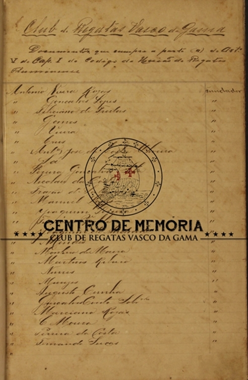 No dia 07 de novembro de 1898, o Club de Regatas Vasco da Gama anexava ao seu pedido de filiação à União de Regatas Fluminense, realizado no dia 24 de outubro do mesmo ano, a sua lista de sócio-fundadores. Eram 187 nomes de homens que foram legitimados pela instituição como àqueles que gestaram o Vasco. O documento encaminhado ainda continha informações dos primeiros barcos, membros da diretoria e os uniformes.