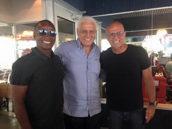 Recebemos hoje na Bradesco Esportes a visita de dois grandes amigos de muitos duelos Vasco x Flamengo. Alegria de rever Adílio e Julio César. Papo bom e muita história. E não esqueçam, logo mais estarei na transmissão de Brasil x Argentina pela Bradesco, 91,9 FM.