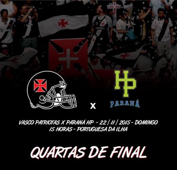 Nesse domingo(22/11) às 15h , o Vasco Patriotas jogará as quartas de final do Torneio Touchdown . Venha apoiar o atual campeão na jornada do bi campeonato.