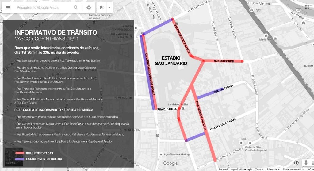 - Rua Bonfim, faixas sentido Estádio São Januário, no trecho entre a Rua Newton Prado e a Rua São Januário;