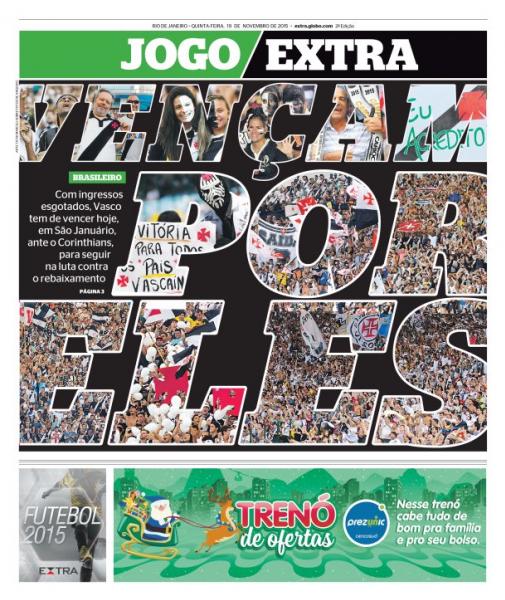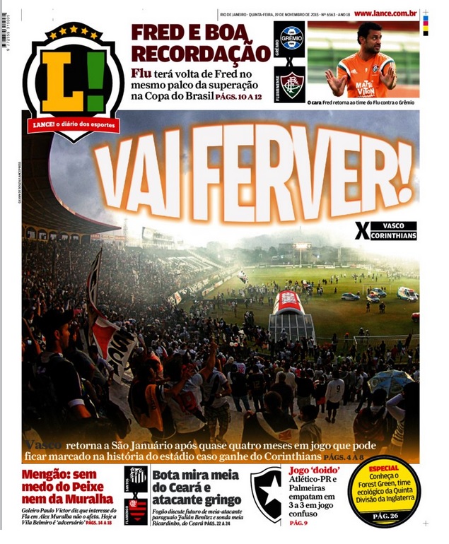 Capas dos jornais destacam o duelo entre Vasco x Corinthians; veja
