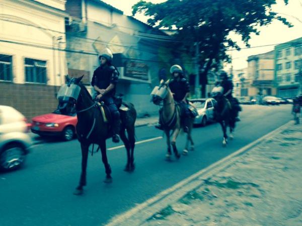 Felippe Costa @felippecosta1 Cavalaria da polícia militar circula nos arredores de São Januário. Policiamento é grande #trcolina