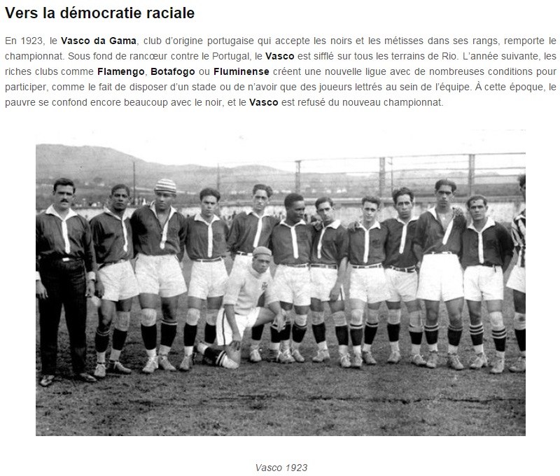 Uma matéria publicada pelo site francês "Lucarne Opposée" no dia 20 de novembro, Dia da Consciência Negra, destacou a luta do C. R. Vasco da Gama contra a discriminação racial no futebol. A reportagem lembra o título carioca de 1923, conquistado com um time formado por negros e pobres, e a tentativa de isolamento do Vasco no ano seguinte pelos grandes clubes da época. Veja a matéria original, em francês, clicando aqui.