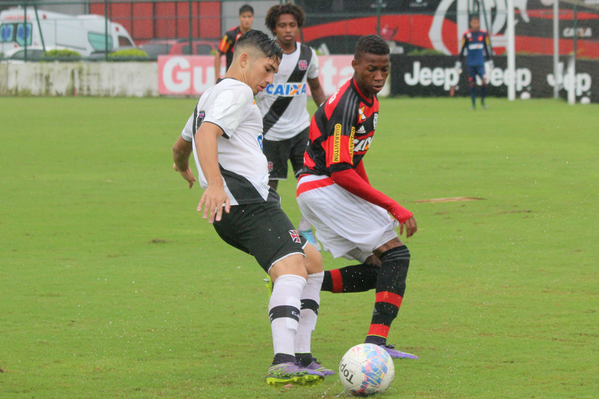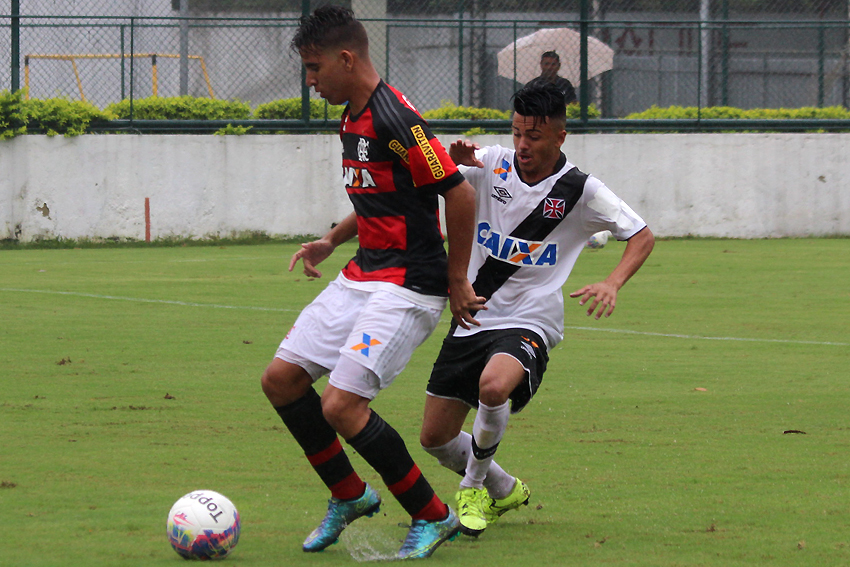 >> O jogo – O confronto começou com trinta minutos de atraso devido a chuva forte na Zona Sul da cidade. Flamengo e Vasco fizeram um primeiro tempo com poucos lances de perigo. Assim como na final da Taça Rio, a equipe rubro-negra começou atacando. Aos cinco minutos o meia João Pedro recebeu pela esquerda e bateu para boa defesa do goleiro cruzmaltino. O gramado tinha pontos de alagamento e o jogo ficou feio com muitos chutões e poucas jogadas trabalhadas. Apenas nos minutos finais os torcedores presente puderam assistir outra oportunidade de gol. Aos 41 o lateral Alan Cardoso cobrou escanteio e por pouco não marcou gol olímpico.