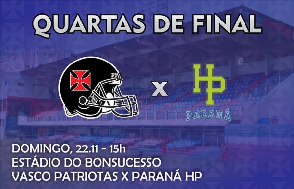 Vasco da Gama Patriotas e Paraná HP se enfrentam pelas quartas de final do Torneio Touchdown a partir das 15h deste domingo (22/11) no estádio do Bonsucesso. Para acompanhar em tempo real, clique aqui.