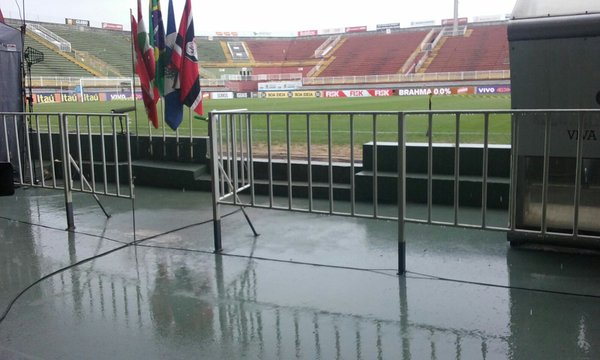 Bruno Lima @BrunoLimaTUPI Chove forte, neste momento, aqui na Arena Joinville. Campo vai ficar pesado na hora do jogo.