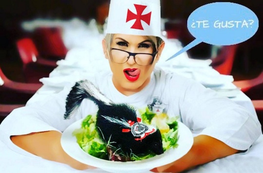 Após usar os decotes para filosofar sobre a esperança que tinha na continuidade do Vasco no Campeonato Brasileiro da Série A e acusar o Fluminense de ser uma vergonha para o futebol nacional, a polêmica 'Musa do Vasco' Jamila Sandora acendeu mais uma vez o farol da provocação e postou uma imagem na qual simula um prato de gambá sendo servido na bandeja.
