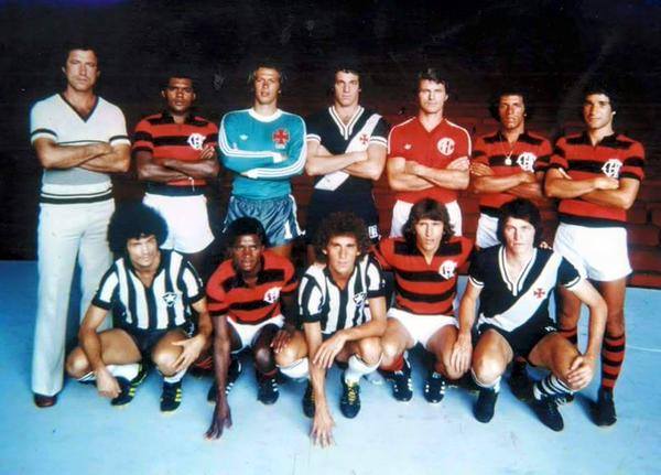 A seleção completa - Em pé: Cláudio Coutinho (técnico/Flamengo), Toninho Baiano (Flamengo), Leão (Vasco), Abel (Vasco), Alex (América), Júnior (Flamengo) e Carpegiani (Flamengo); Agachados: Dé (Botafogo), Adílio (Flamengo), Mendonça (Botafogo), Zico (Flamengo) e Guina (Vasco).