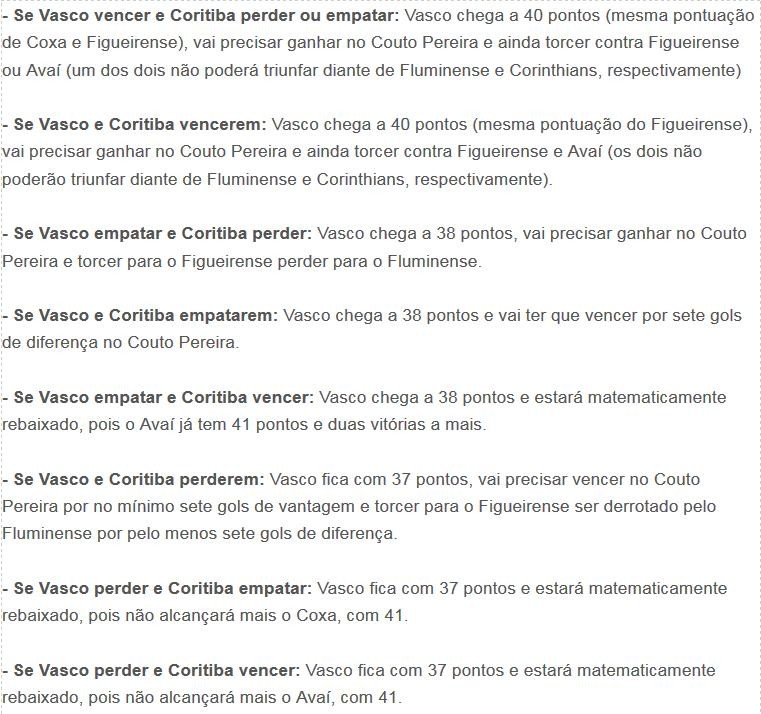 Veja as possibilidades do Vasco na luta para sair do Z4 após os resultados de sábado