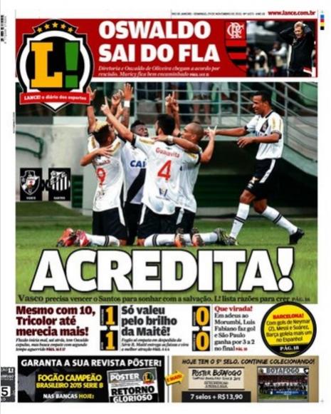 Veja como a imprensa carioca destacou o jogo decisivo Vasco x Santos
