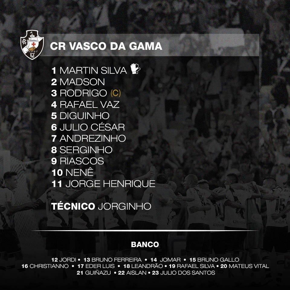 CR Vasco da Gama @vascodagama Vascão escalado para a partida contra o Santos! #VamosGanharVasco