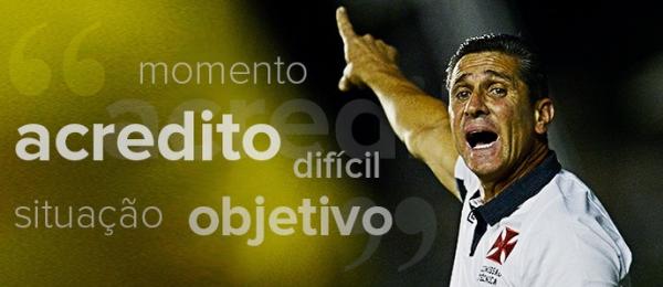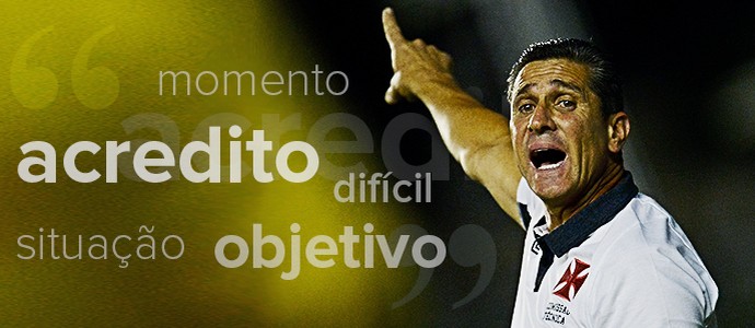 A nuvem de tags - espécie de palavras-chaves - aponta para confusão de sentimentos nas cinco principais expressões usadas pelo treinador. "Momento", "acredito" e algumas variações - acreditar, acreditando -, "situação", "difícil" e "objetivo" formam o top 5 do treinador do Vasco em três meses e meio de trabalho em São Januário - ou mais de 100 dias no comando do time, sempre debaixo da pressão da zona de rebaixamento.