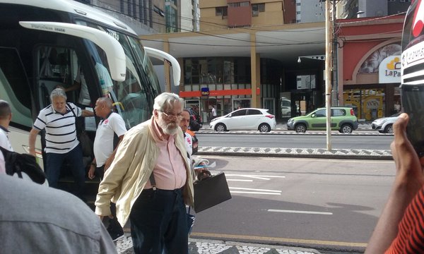O primeiro a descer do coletivo foi Eurico, que não falou com a imprensa e entrou no estabelecimento cercado por guarda-costas.