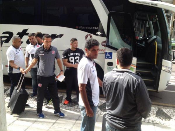 Vasco chegou agora ao hotel, em Curitiba. Segurança reforçada, alta cúpula da diretoria e até o suspenso Andrezinho.