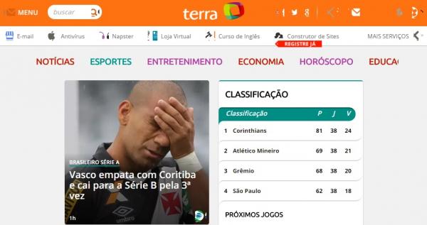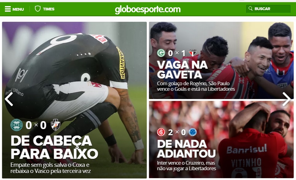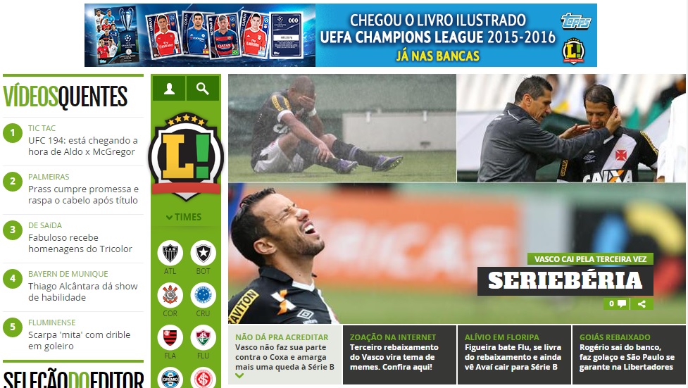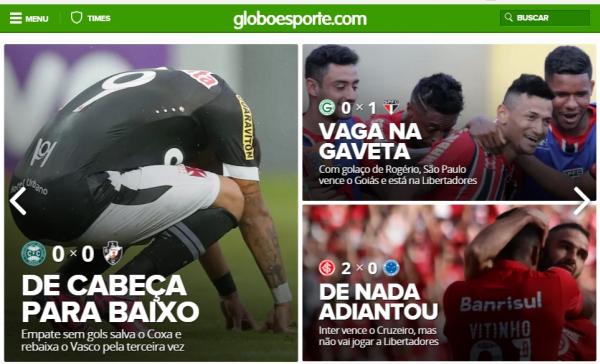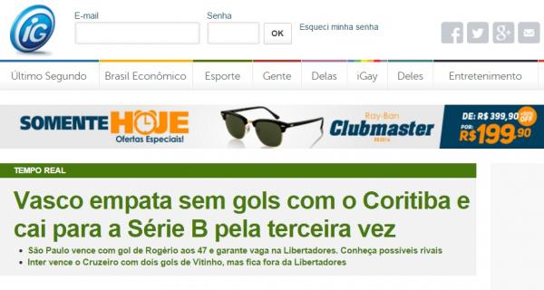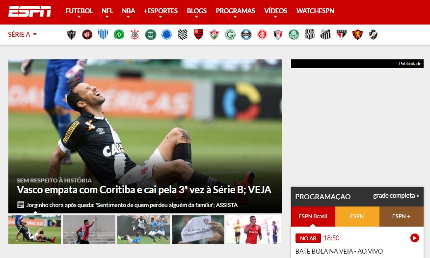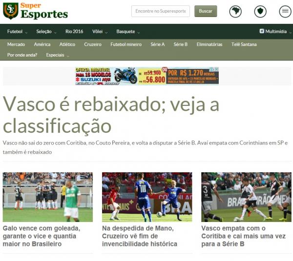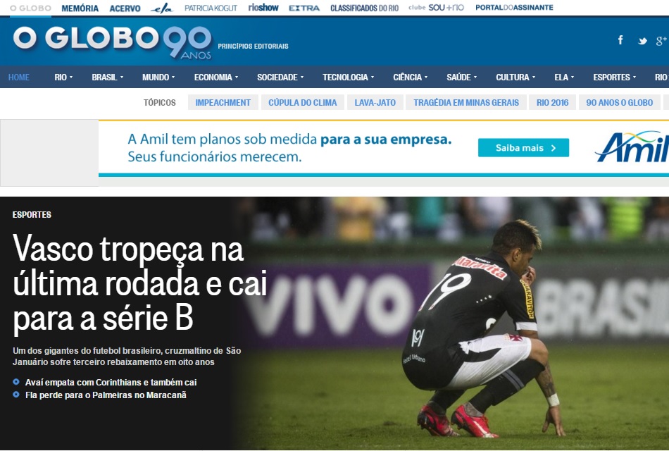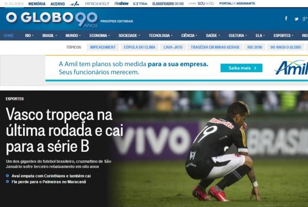 Veja como os principais sites destacaram o rebaixamento do Vasco