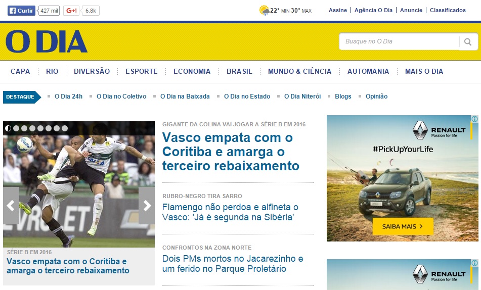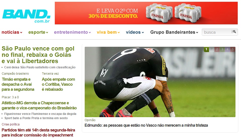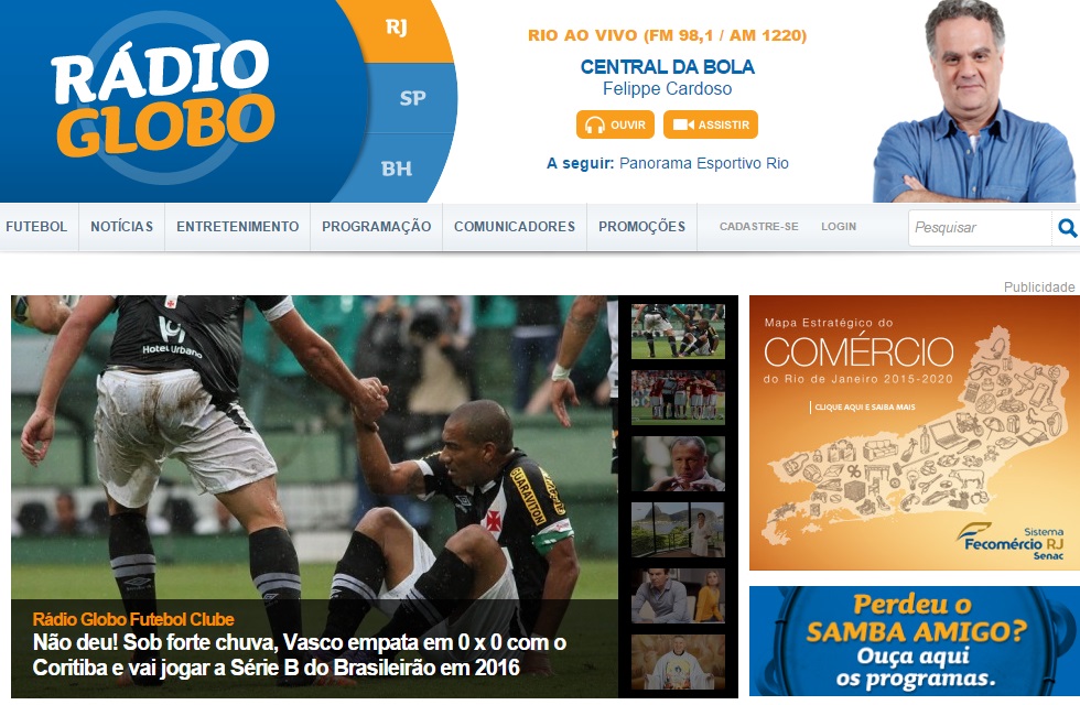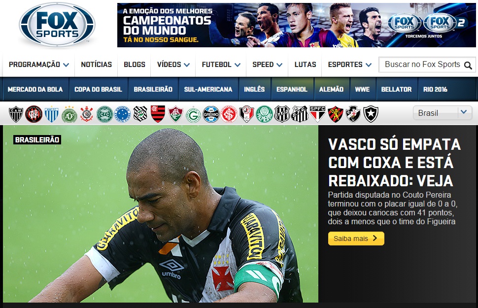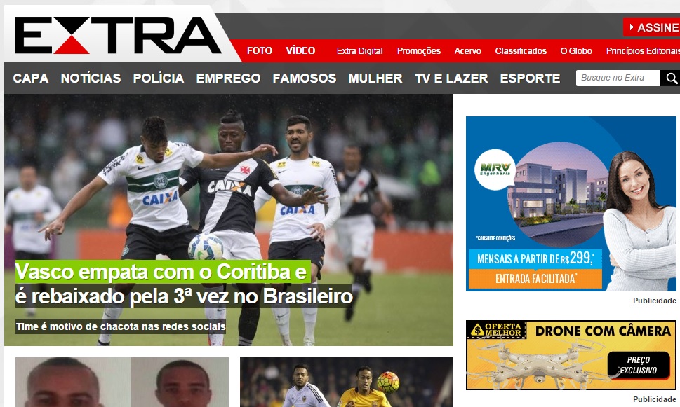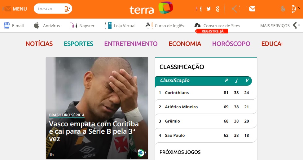 Veja como os principais sites destacaram o rebaixamento do Vasco
