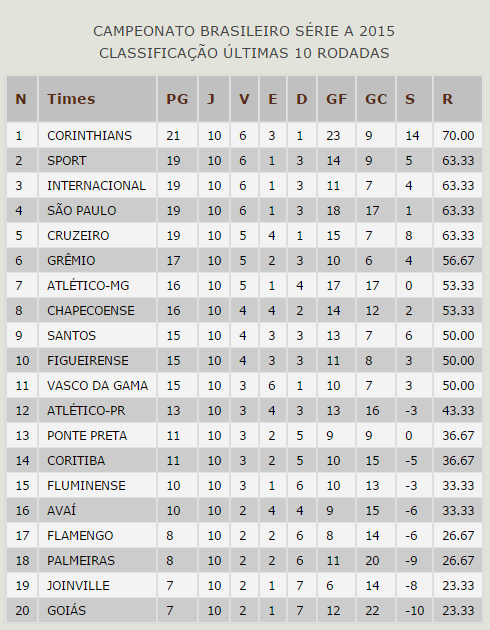Tabela do Campeonato Brasileiro 2013