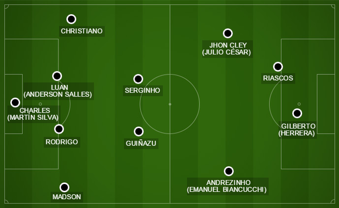 O time das primeiras 19 rodadas ainda tinha Jhon Cley e Gilberto, que deixaram o clube no meio da temporada rumo ao Al-Qadisiyah (Arábia Saudita) e Chicago Fire (Estados Unidos), respectivamente. Emanuel Biancucchi e Herrera também foram escalados com frequência na época, mas os gringos decepcionaram - o primo de Messi chegou a ter momento de destaque, mas posteriormente caiu de rendimento. Guiñazu tinha lugar fixo no meio de campo, assim como o contestado Christiano na lateral esquerda. Julio César chegou a ser titular com Roth, só que numa posição mais avançada, como um meia, sem sucesso. Aquela equipe teve a maioria das vezes Charles no lugar de Martín Silva, desfalque durante várias rodadas por convocações e lesão. E na zaga, Anderson Salles revezou com Luan no período dos Jogos Pan-Americanos.