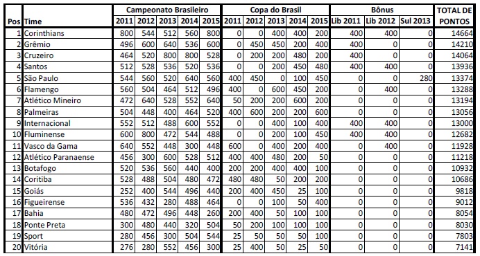 Ranking Nacional de Clubes 2015 (oficial, divulgado dez/2014):