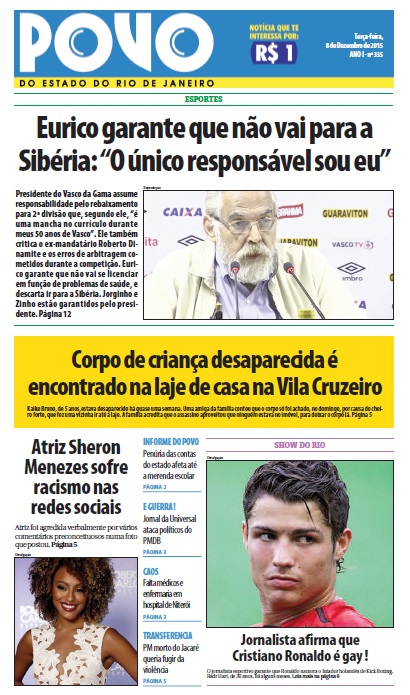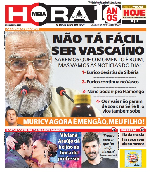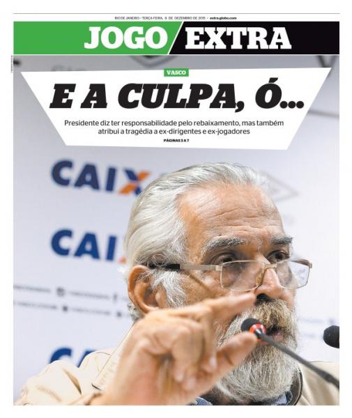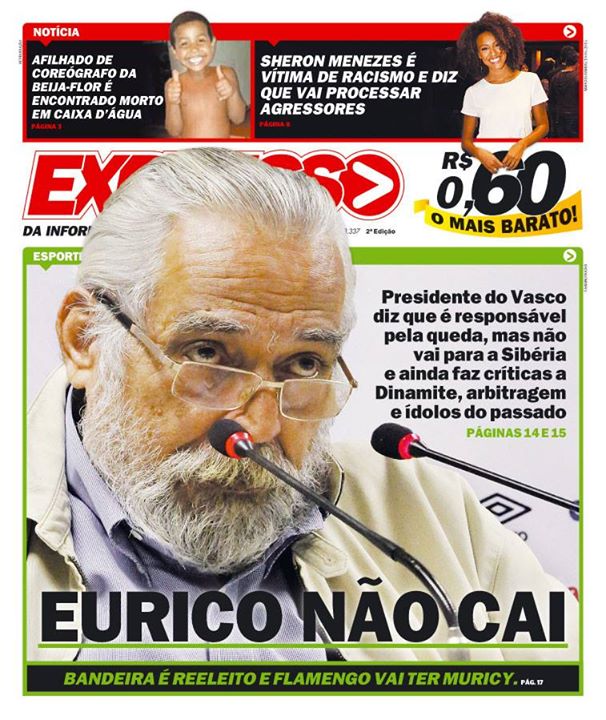 Veja como a imprensa carioca destacou a entrevista coletiva de Eurico após o rebaixamento do Vasco