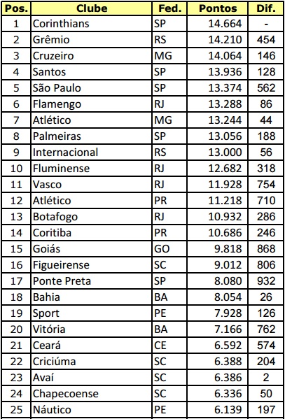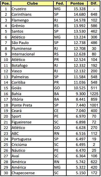 Ranking Nacional de Clubes da CBF 2016 (divulgado em dez/2015):