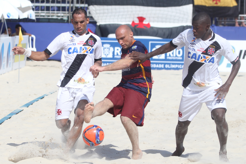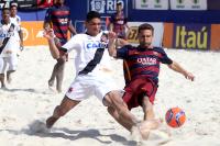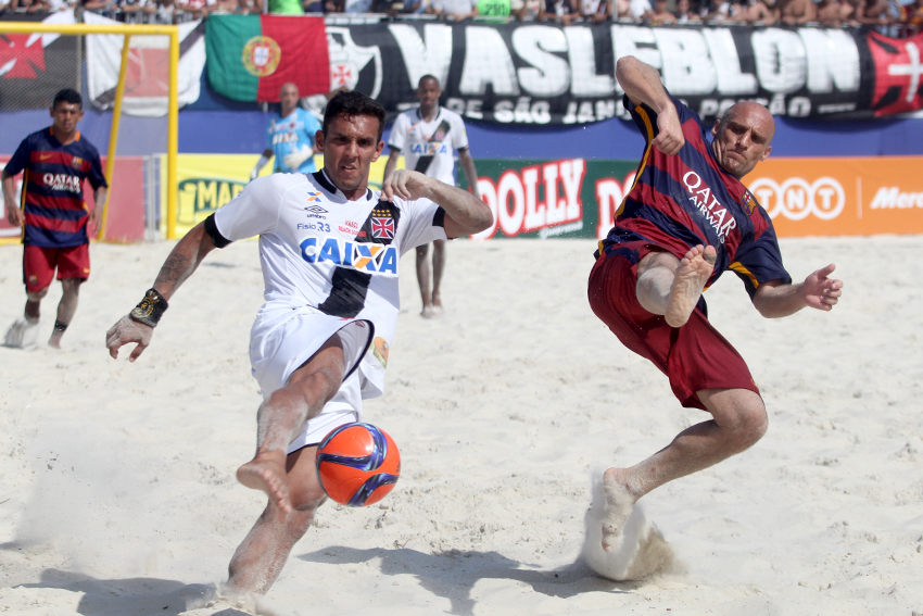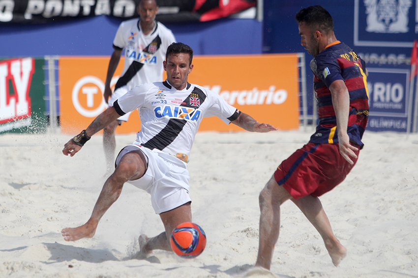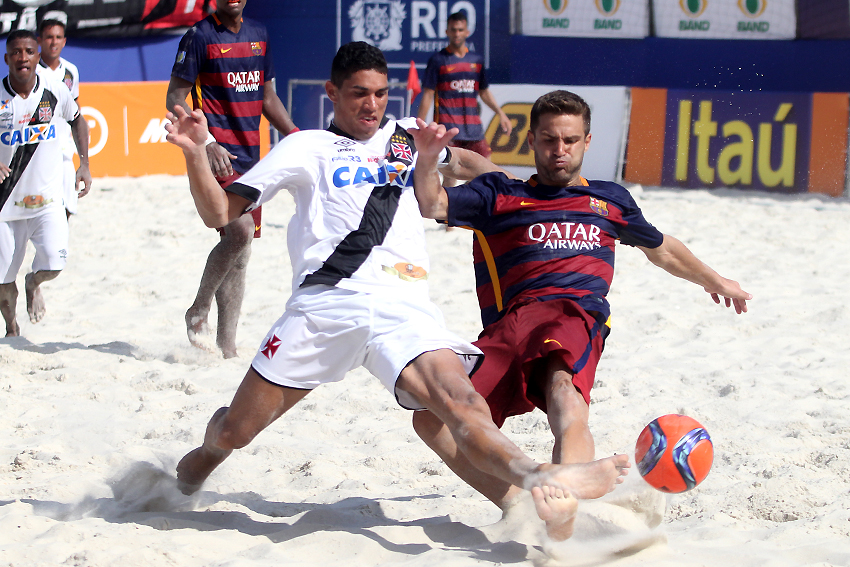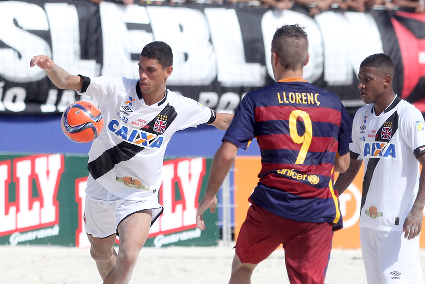Apontado como um dos maiores celeiros do futebol de areia no país, o Vasco fez o segundo com uma de suas crias, Catarino, que emendou um cruzamento com chute forte e fez 2 a 0. O Barcelona partiu para cima logo na saída de bola. Em uma jogada ensaiada, Datinha recebeu um toque e soltou uma bomba do meio da quadra para diminuir: 2 a 1. O jogo ficou tenso. Derrubado na área, Marcos sofreu uma falta perigosa e não desperdiçou a grande chance de ampliar a vantagem do time da Colina. Bateu forte no cantinho esquerdo de Nona e correu para o abraço.
