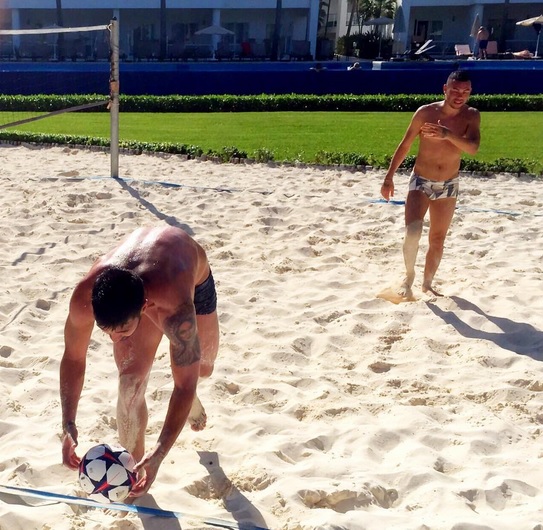 Luan publica foto com o ex-vascaíno Rodolfo jogando futevôlei no México