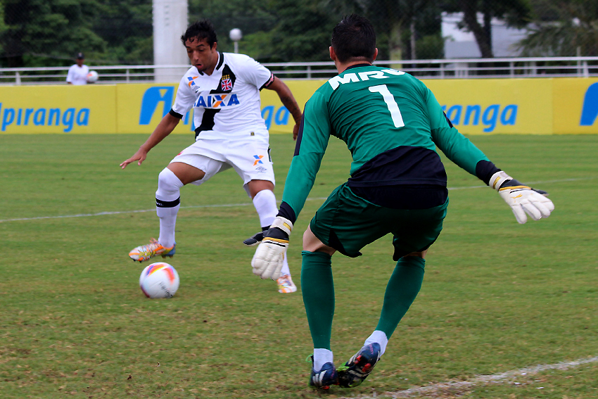 Necessitando da vitória para se manter com chances de classificação, o Vasco se lançou ao ataque nos primeiros minutos e não demorou muito para abrir ao placar. Aos cinco minutos, Matheus Índio deu um passe açucarado para Renato Kayzer e o viu deixar Hugo Borges em boas condições dentro da grande área. Sem marcação, o artilheiro do último Campeonato Carioca sub-17 empurrou a bola para o fundo das redes.