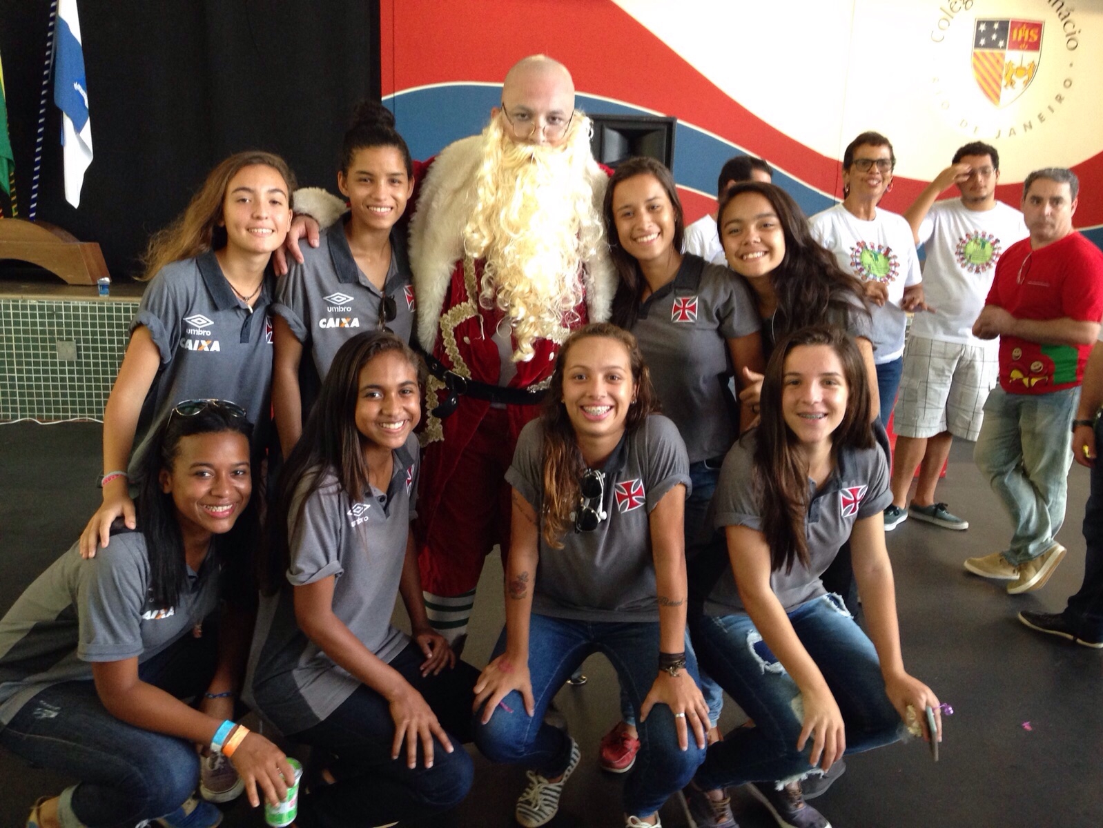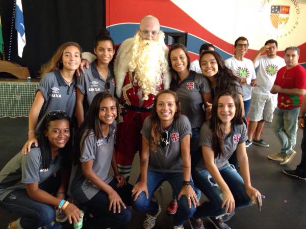 A confraternização natalina antecipada aconteceu no último domingo (13/12), no Colégio Santo Inácio, em Botafogo. As jogadoras participaram da chegada do Papai Noel, tiraram fotos e distribuíram sorrisos e alegria às crianças que estavam presentes.