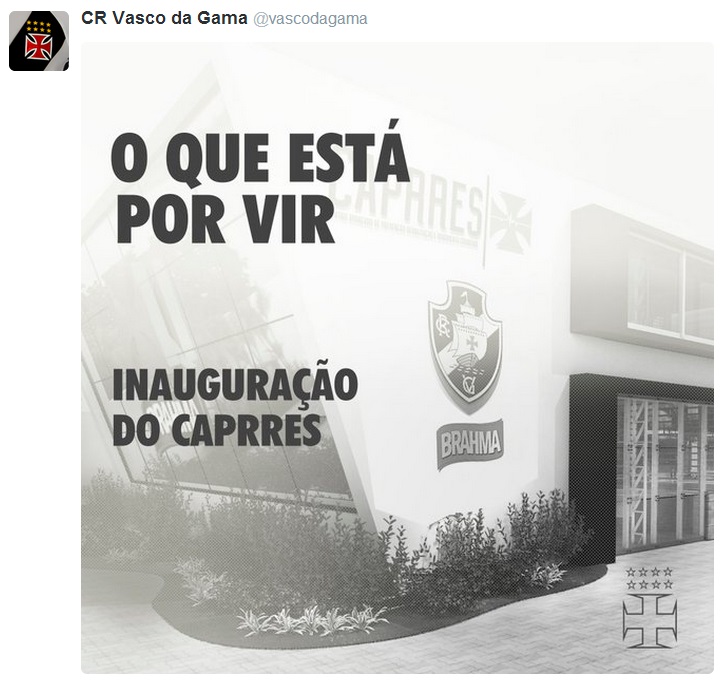 Via Twitter, Vasco anuncia 'o que está por vir': Sócio-torcedor, basquete, Caprres, ginásio, futebol feminino e campo anexo