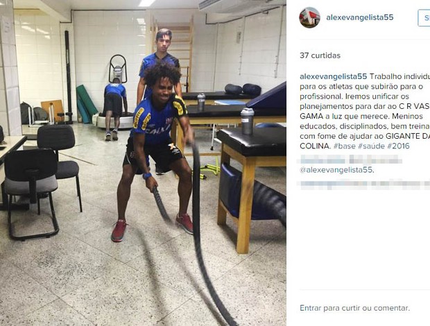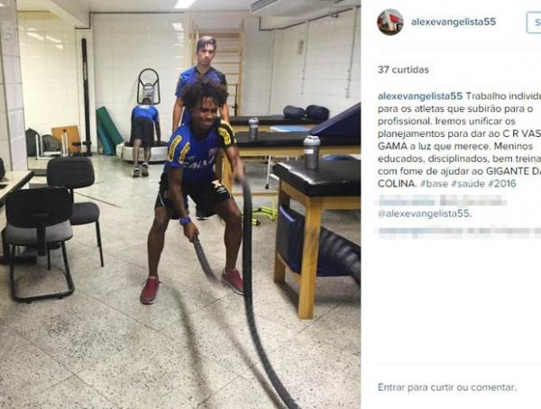 Com a ideia de aproveitar muitos jogadores da base em 2016, o Vasco começa a trabalhar para que os garotos cheguem em bom nível físico aos profissionais. Em foto publicada em uma rede social, o gerente científico Alex Evangelista mostrou Paulo Vitor, de 17 anos, em um trabalho individualizado.