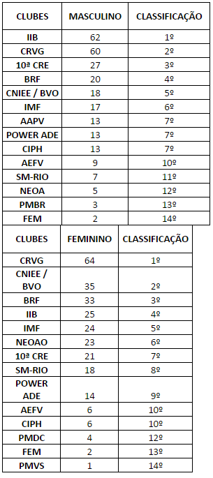 Observação: Participaram ainda dos Campeonatos Estaduais as equipes da Prefeitura Municipal de Varre-Sai e da Prefeitura Municipal de Nova Iguaçu.
