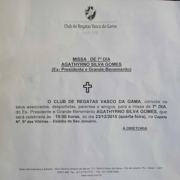 Missa de 7º dia do ex-presidente Agathyrno Silva Gomes será na 4ª-feira às 19h na Capela de N. Srª. das Vitórias